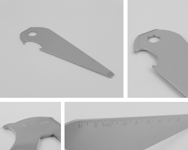 PAINT CAN OPENER NO. 7292-E Measure / Material:	approx. 13,2 cm, stainless steel Functions:			paint can opener, 3 different openers for paint cans,  10 mm wrench, ruler with cm or inch, bottle opener   MADE IN SOLINGEN/GERMANY back back forward forward Contact Legal Notice Privacy Policy DUISBERG production